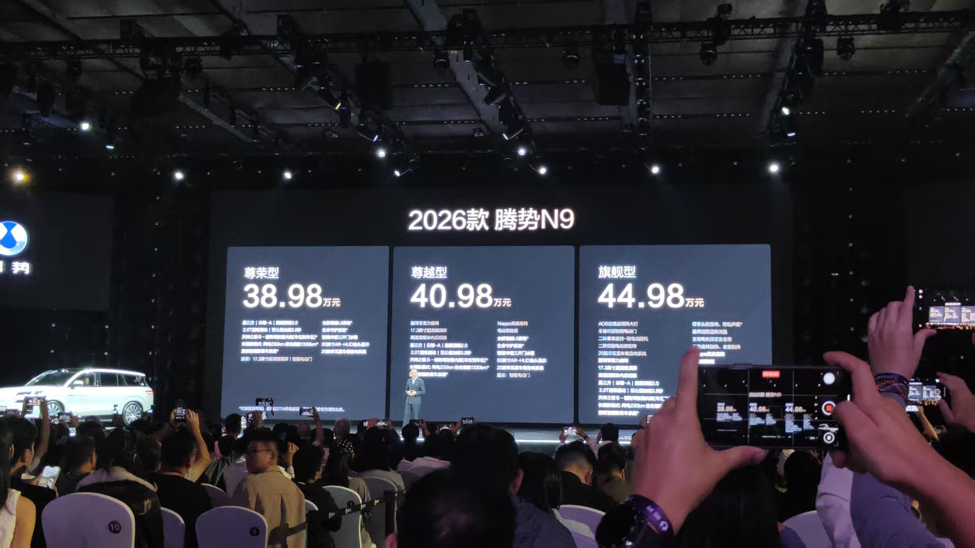 9月17日,比亚迪旗下高端品牌腾势推出2026款腾势N9。新车共推出尊荣型、尊越型、旗舰型3款车型,官方指导价38.98万——44.98万元。值得一提的是,今年3月,腾势N9才刚刚上市,短短半年便推出新款,更新节奏之快,显示出腾势和比亚迪对该车型及大六座SUV市场的高度重视。