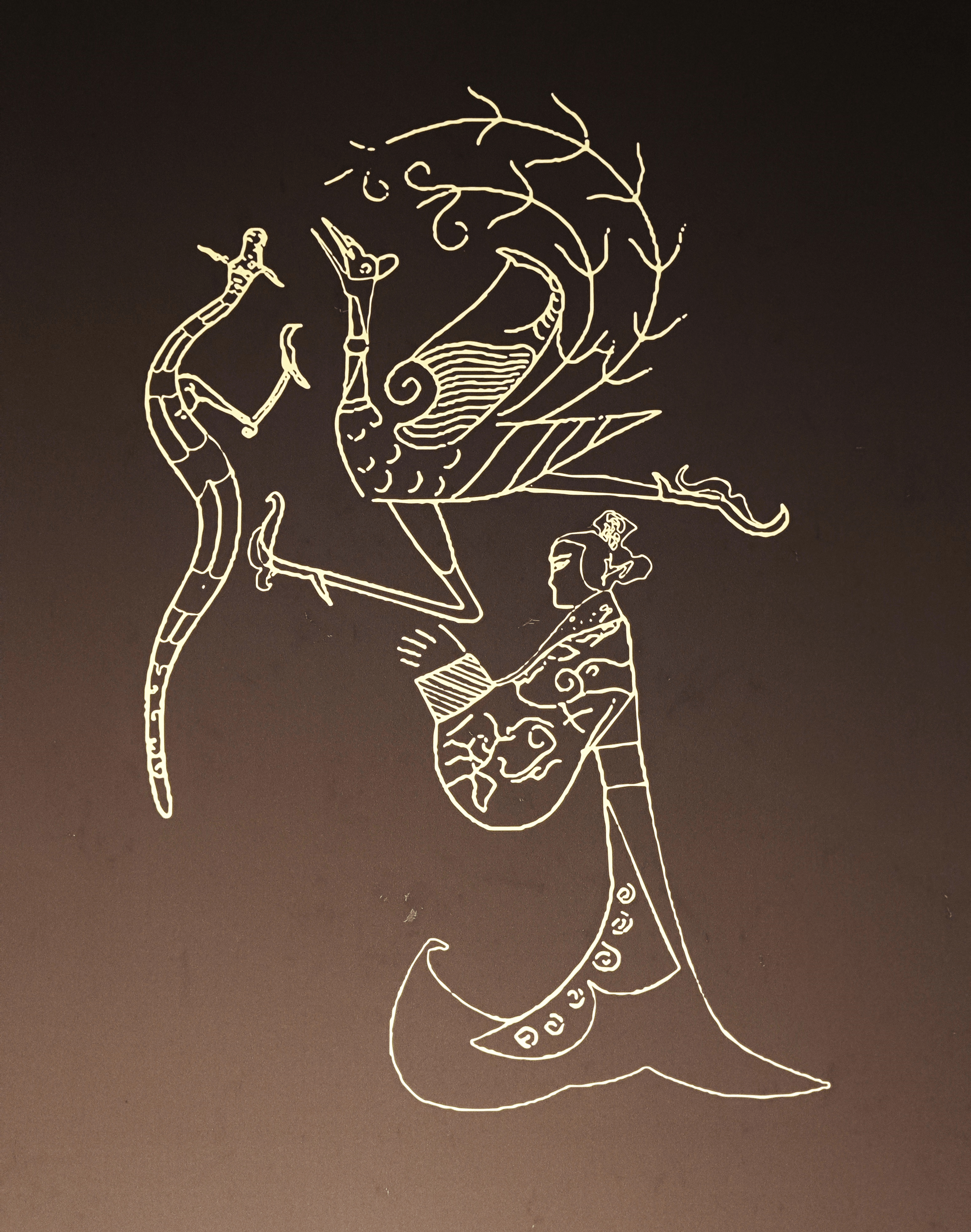 《人物龙凤图》线描图,拍摄于湖北省博物馆