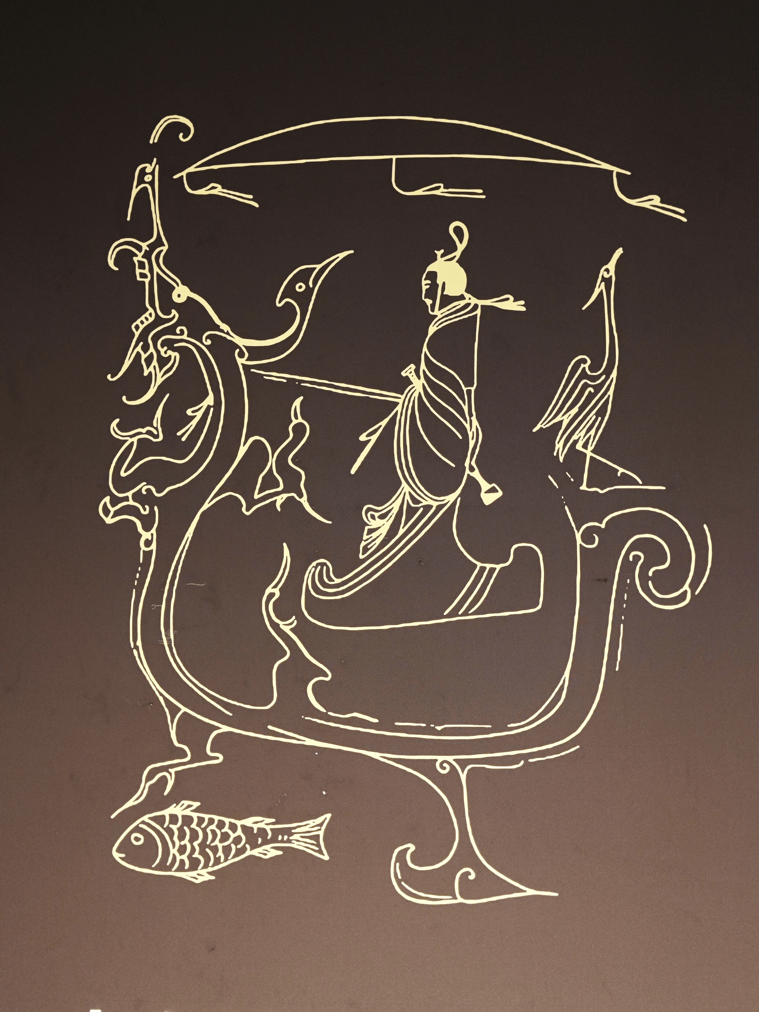 《人物御龙图》线描图,拍摄于湖北省博物馆