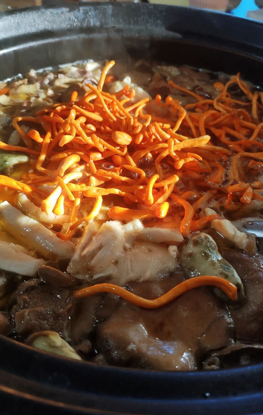 这是野生菌常常出现在汽锅鸡、小炒肉、煮火腿等肉菜里的原因。而野生菌牛肉火锅,则是其中滋味最顶尖者。
