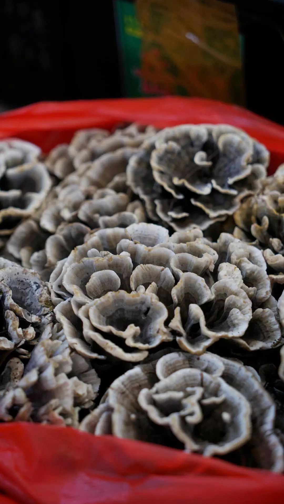南华野生菌市场里有专门处理干巴菌的摊位。它的清理起来极其费事,因为干巴菌是整朵从土壤中冒出来打开的,所以会把土面上的各种松针、叶片、泥沙“吞”到缝隙里去。吃以前,要把干巴菌一片片掰开来,小心剔掉泥沙杂物,且只能冲洗,不能泡水,一泡,香味就逊了。
