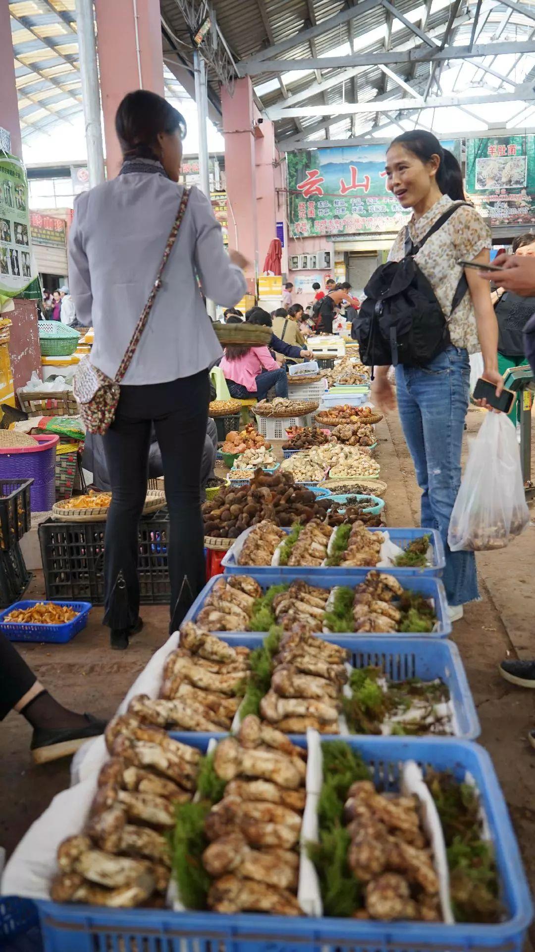 除了进入野生菌产区,让老乡和专家带队上山寻菌之外,野生菌市场,是我们能够最直观、最全面了解云南野生菌的地方。