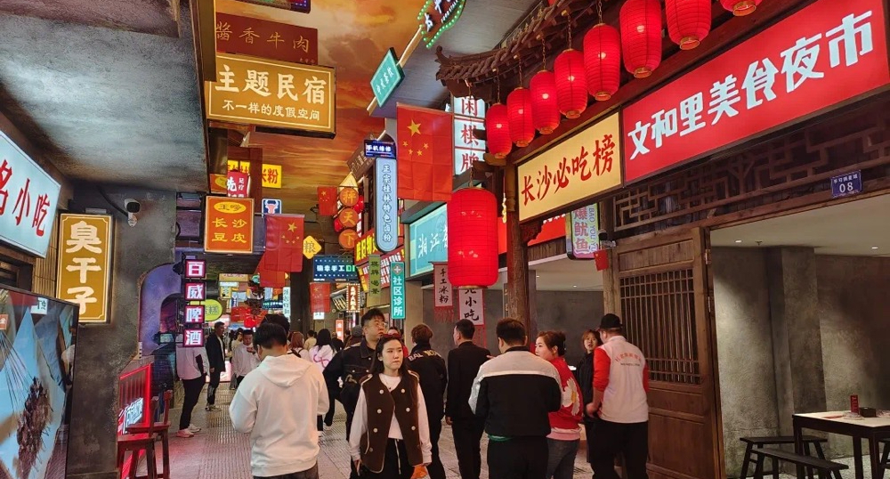 告别忙碌的一天,几缕人间烟火,几道特色夜宵,约上三五好友相聚……文和里·手可摘星城以浓浓的“烟火气”构建涵盖多种体验、多种特色、多种文化的沉浸式餐饮空间,俘获了一众粉丝的芳心。一面2500平方米左右的“网红墙”让人眼前一亮,成为很多人打卡拍照的新选择。颇具新意的烟火外墙设计,融入众多新奇互动装置,各类文化打卡场景使这里成为长春文旅美食沉浸式体验的新坐标。