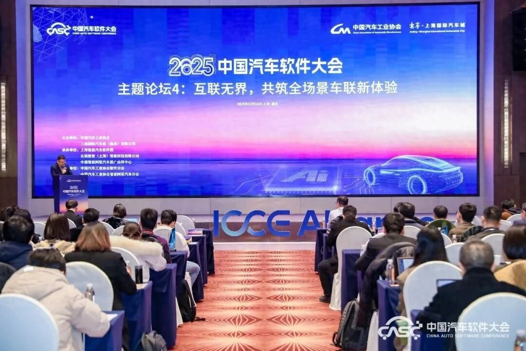 2025年12月15-16日,2025中国汽车软件大会在上海嘉定成功举办。本届大会由中国汽车工业协会和上海国际汽车城(集团)有限公司联合主办。12月16日下午,举办了“互联无界,共筑全场景车联新体验”主题论坛。会上,中国汽车工业协会副总工程师、智慧车联产业生态联盟(ICCE)秘书长王耀致辞,重庆长安汽车股份有限公司数字钥匙业务负责人雷庆之、华为技术有限公司华为钱包产品总监李强、吉利汽车生态互联业务研发负责人叶振南、荣耀终端股份有限公司智慧出行产品总监李任鹏、宝马(中国)服务有限公司手车互联产品负责人钱峙屹、华为终端有限公司华为 HiCar 运营总监徐风、惠州市德赛西威汽车电子股份有限公司主任工程师黄锐豪、智慧终端微电子协会(ITMA)iTAP技术组主席范姝男、上海机动车检测认证技术研究中心有限公司智能电子系统检测中心主任助理李俊成等分别作了主题演讲。本场论坛由智慧车联产业生态联盟(ICCE)副秘书长任锋主持。