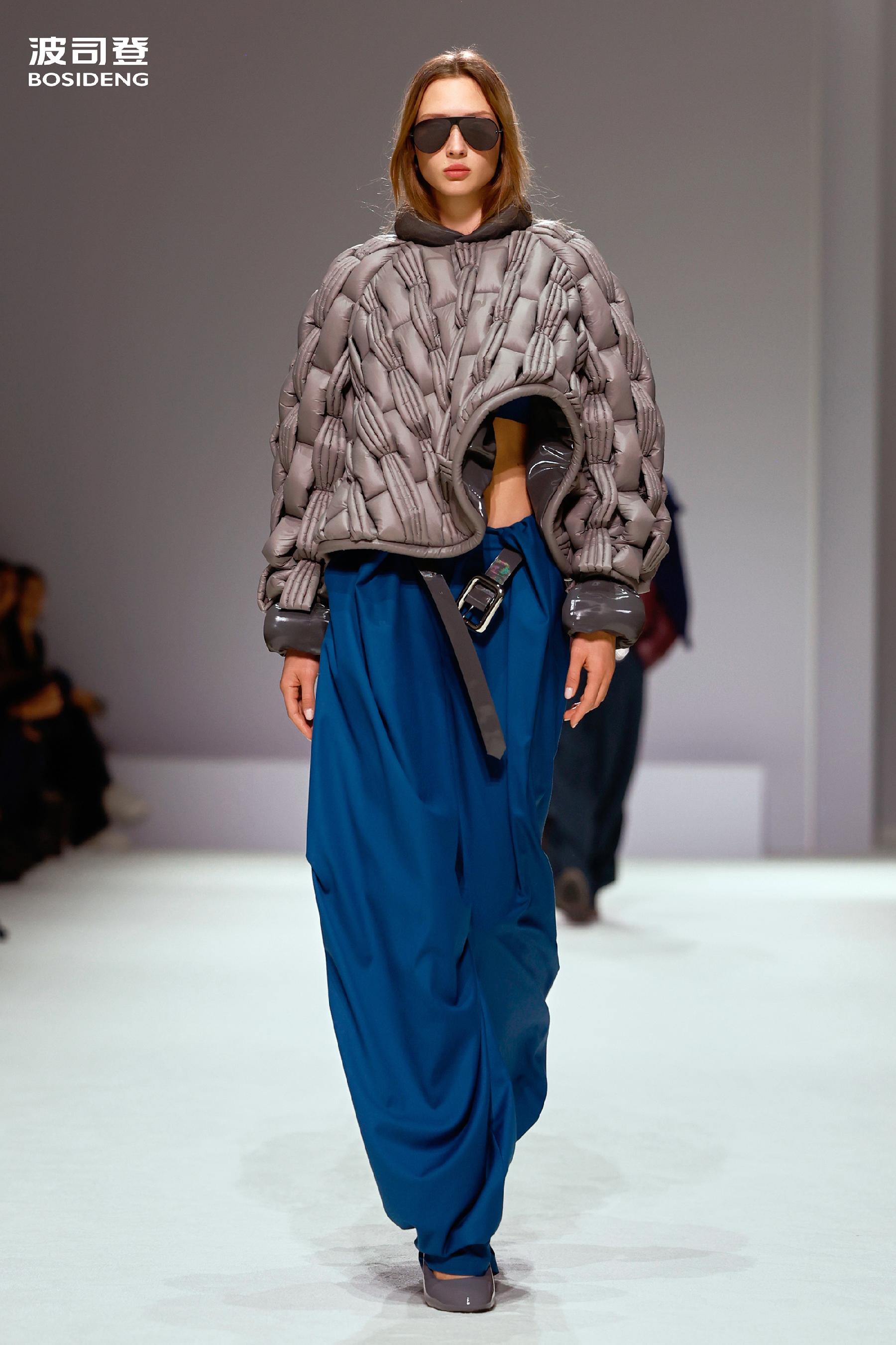 「大师泡芙」系列最令人印象深刻的,是它对传统羽绒服厚重臃肿刻板印象的打破。外观上,建筑般挺括的廓形藏着立体剪裁与层叠走线的精妙,新古典主义宫廷立领经现代简化,腰线与袖口如罗马柱般的收束处理,勾勒出利落兼具仪式感的线条。视觉上的饱满分量与触手可及的蓬松柔软形成奇妙反差,这背后是波司登在羽绒服结构、充绒工艺与面料研发领域多年的深耕细作。