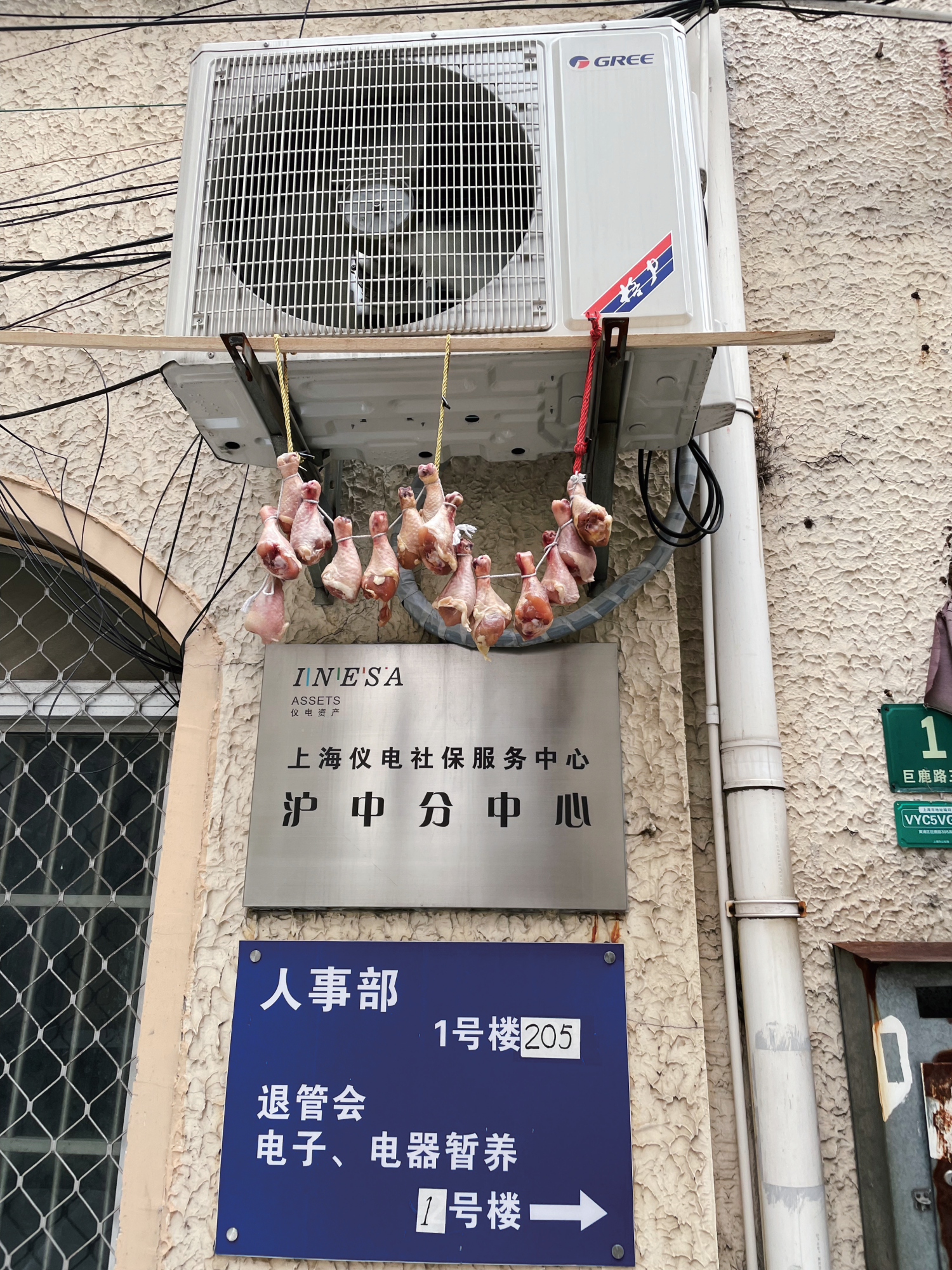 隔壁614弄堂的铁门长年半开。但门边摆了几个共享充电宝设备,没看出来是谁家的生意。外人乍来此处,会认为本街区最广泛生意是卖啤酒,实际不然,真正不放过任何一个空间的是充电宝生意。啤酒顶多是不放过任何一家店,而充电宝大佬则是不放过任何一个空间,所有的店,所有的可以甩根电线的空间——弄堂口修车配钥匙的、保安的小亭子、垃圾箱的隔壁,哪怕这个铺面此时闲置,抠出一个窗口也要摆上几组机器。弄堂口掩住的半扇铁门前还摆着一个招牌,上面写着: