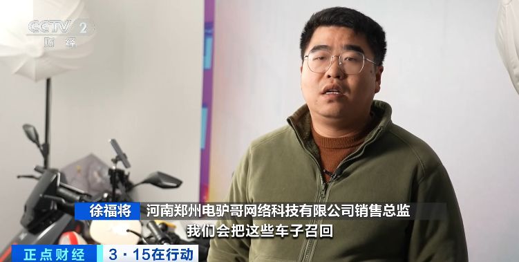 河南郑州电驴哥网络科技有限公司销售总监 徐福将:我们会把这些车子召回,然后上牌,如果没办法上牌,这些车子坚决不能流入市场里面去。
