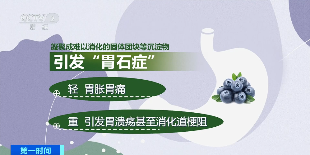 首先,蓝莓中富含果胶与鞣酸,若空腹或短时间内大量摄入,这些成分会在胃酸作用下与蛋白质结合,逐渐凝聚成难以消化的固体团块等沉淀物引发“胃石症”,轻则胃胀胃痛,重则引发胃溃疡甚至消化道梗阻。中国传统医学也发现,过量食用蓝莓会损伤脾胃阳气,影响消化吸收功能。
