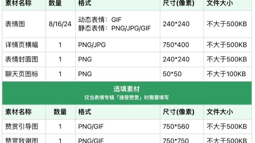 其中,表情专辑投稿数量为 8/16/24 个,审核通过后可预约上架时间。用表情账号绑定的微信号关注“微信表情开放平台”公众号,即可接收审核结果推送。