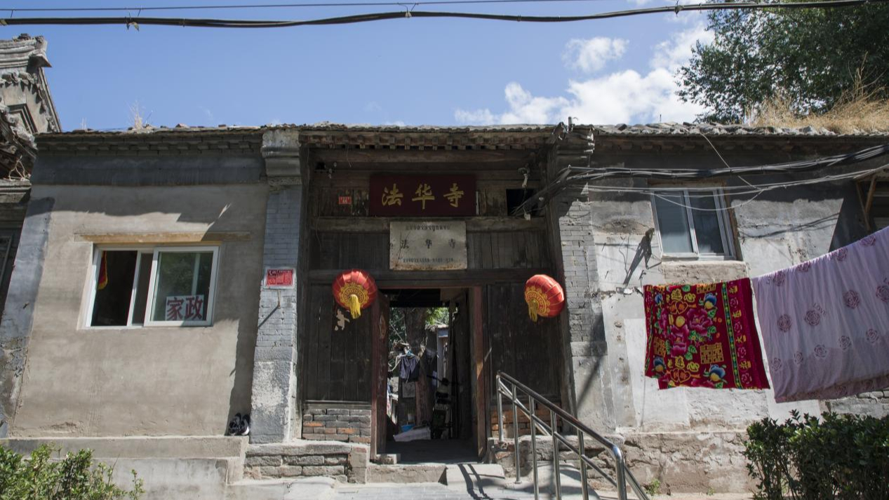 现今法华寺山门旁边的一个小门是唯一能够进出法华寺的通道,门檐下面挂着两块牌子,一块是法华寺的寺牌,一块是原崇文区政府1984年挂的文保牌。现在寺内拥挤着各种高低不齐的小房,曾经晨钟暮鼓,香烟缭绕的清净寺院已被煎炒烹炸各种炒菜的气味替代。旧时,北京叫法华寺的寺庙有4座,现在只有崇文门外这座法华寺还有残迹遗存。