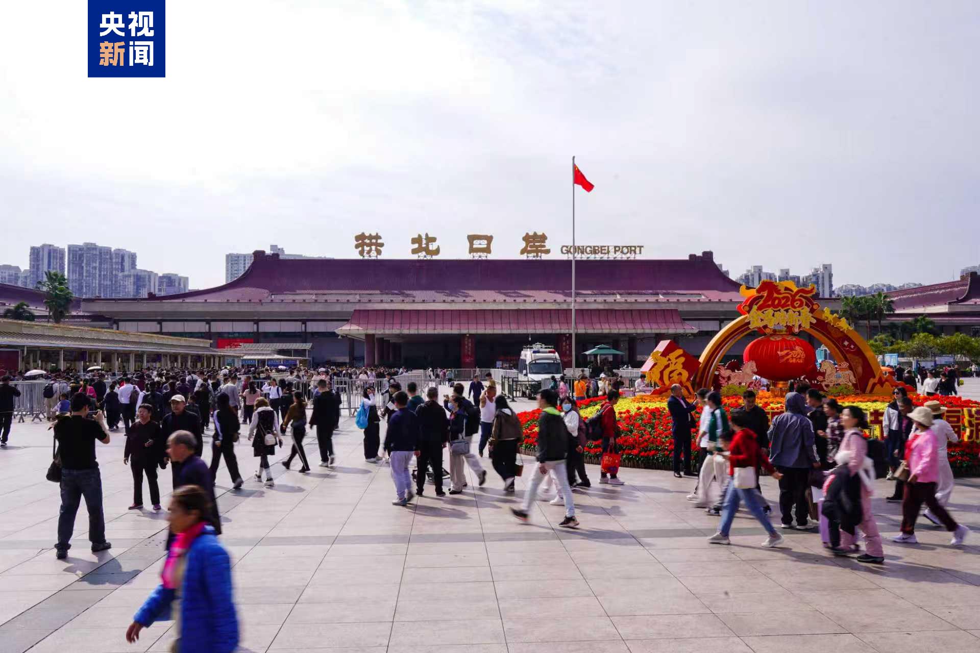 作为连接粤澳的核心民生通道,经拱北口岸来往的春运客流呈现“总量攀升、双向活跃”的显著特征,折射出珠澳一体化发展的强劲活力。春运期间,拱北边检站累计查验港澳居民546万人次,占比近四成,查验持旅游签注的内地游客达342万人次,同比增长超40%。根据统计,春运期间客流高峰集中在2月4日至2月10日,其中2月7日单日客流达46.3万人次,较2025年同期最高值增长近8%。