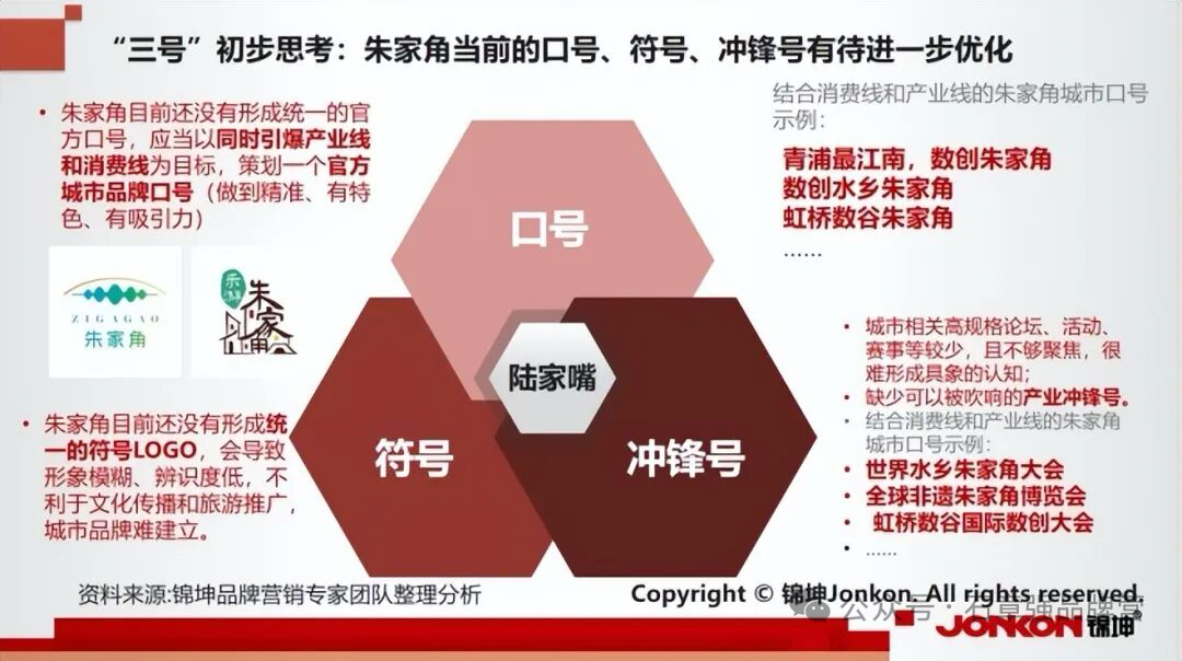 目前朱家角古镇的口号、符号、冲锋号等三号方面都面临着缺失,亟待优化。
