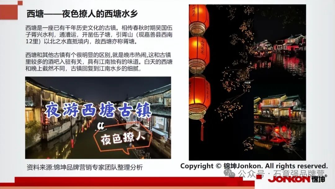 作为产城园企品牌服务商头牌和上海现代服务业联合会品牌委秘书长单位,锦坤品牌专家在参与上海古镇转型发展的市委一号课题研究的过程中发现,西塘、慈城、乌镇、周庄、游埠和南浔等古镇通过各自独特的发展策略,在日游夜市、小吃产业、特色节庆、拍照打卡、美食体验和前沿赛事等方面形成了差异化竞争优势,也正在引领长三角古镇转型发展的六大态势。
