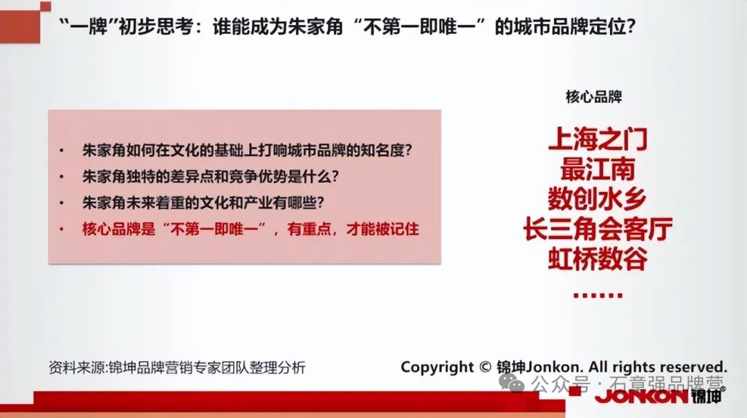 针对以上问题,在青浦区委区政府2025年9月4-5日召开的“农文旅商体展”融合发展规划专家座谈会上,锦坤品牌创始人石章强在做《引爆青浦千亿品牌IP的名号符号口号冲锋号》主旨发言时再次建议,以朱家角为例的长三角古镇必须要明确自身的口号、符号、冲锋号,对外呈现自身差异化的品牌形象,才能真正实现地区的消费热闹、IP引爆和产业打造!