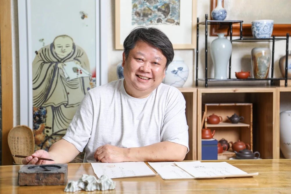 刘刚认为古人写毛笔字不是为了表演,如日常茶饭事,所以,写字只要自由随性,就会自带其美。他平日就这样写字,签个书名,写个小便条,抄抄写写自己的小诗,或写把夏扇送给朋友解热,其乐融融。他不喜欢写字还要“无一字无来历”,但他热爱读帖,读字也就读了内容。他遍读古人字贴,却从不临摹古人字帖,要说刘刚字的来历,也许来自冬季天空下的枯树枝,或来自汉简的飞书,还有鲁迅笔下的影子。他们这一代人受鲁迅的影响太大了。据说儿子涵宇擅绘宋明古画,也是被老爸耳提面命遍读古画得来的,起点颇高,上手不俗,现在瓷上作画,已小有成就了。