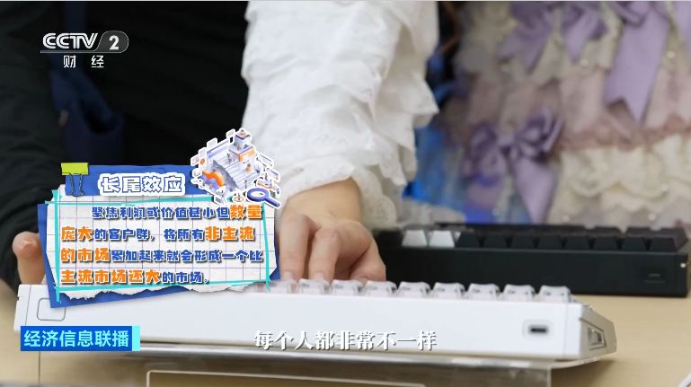 上海交大高级金融学院 金融学教授、耶鲁大学国际金融中心 研究员 朱宁:每个人都希望键盘是自己的符号的一种投射。在经济学里面有个概念,叫长尾效应或者长尾分布。个人的喜好,每个人都非常不一样。中间的人群的平均喜好和每个人的喜好之间有很大的差距。因为中国是一个超大经济体,所以即使长尾里面,很小的很特殊的一部分的需求,也会汇集成一个足够大的市场。