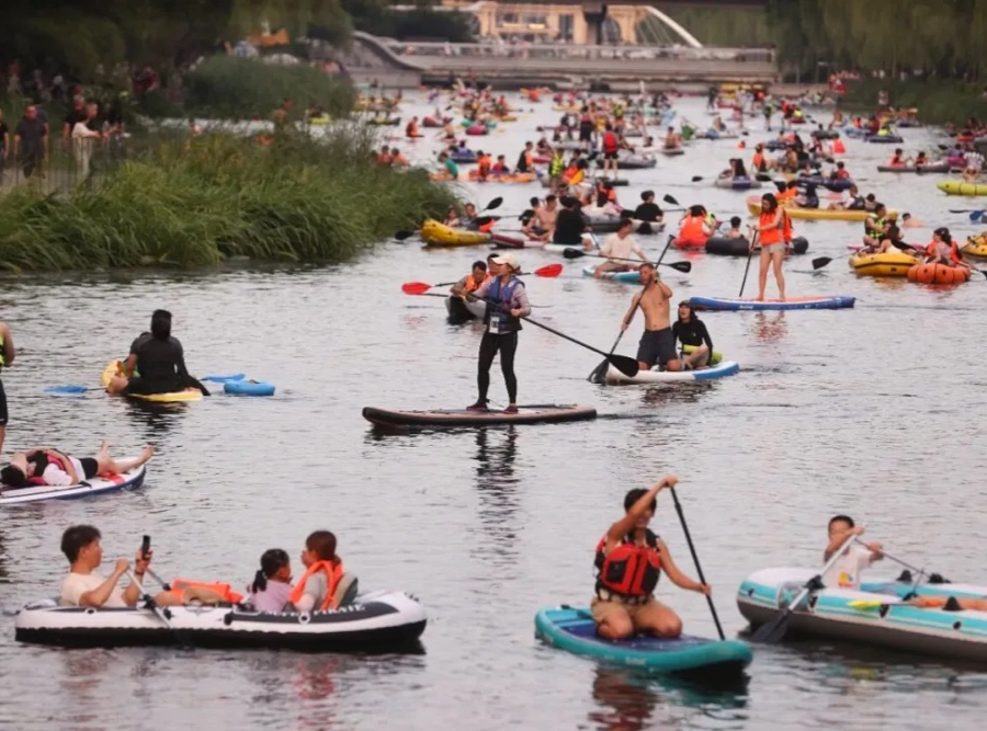 亮马河上的桨板多到“下不去水”
